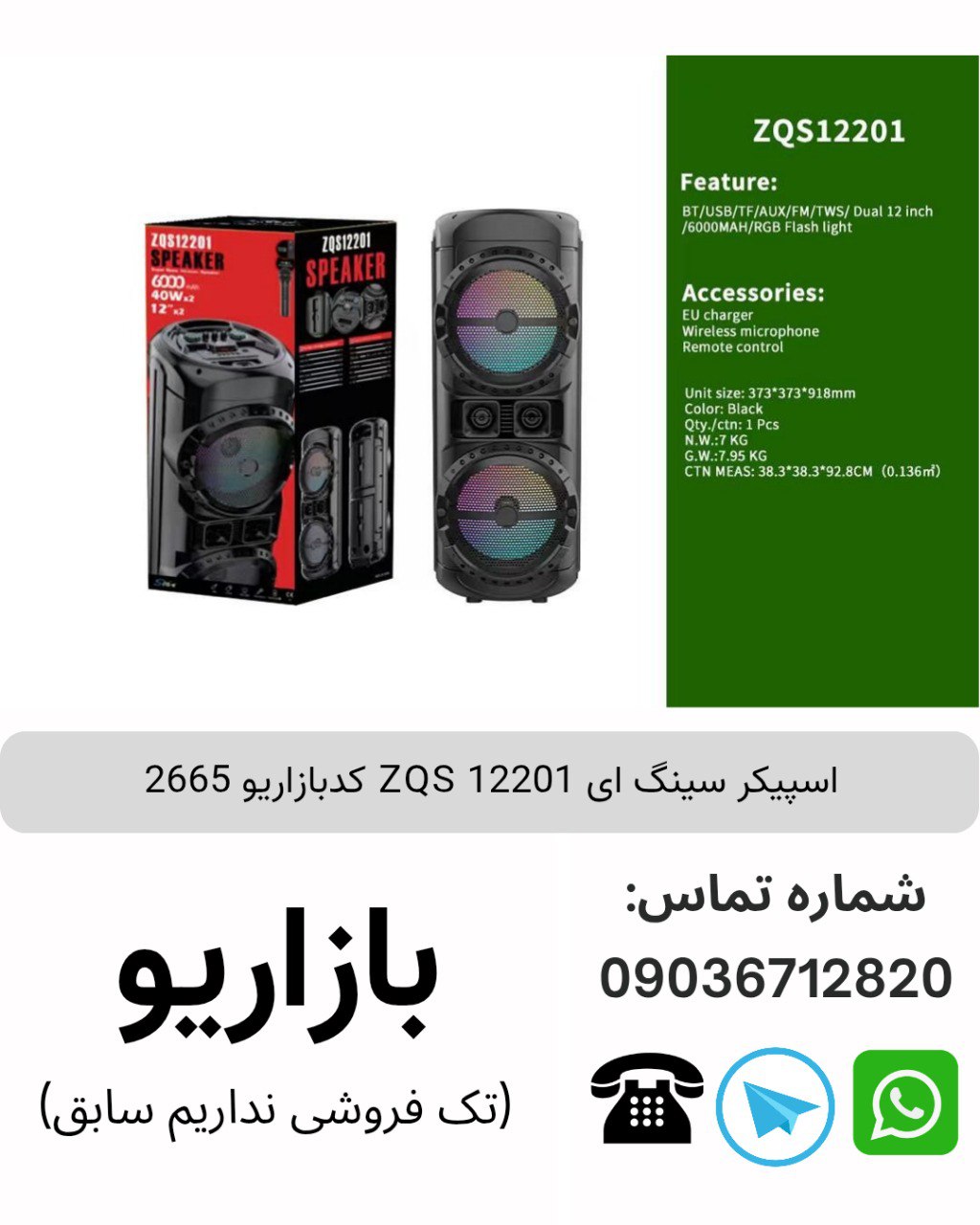 فروش عمده اسپیکر بلوتوثی مدل ZQS-12201