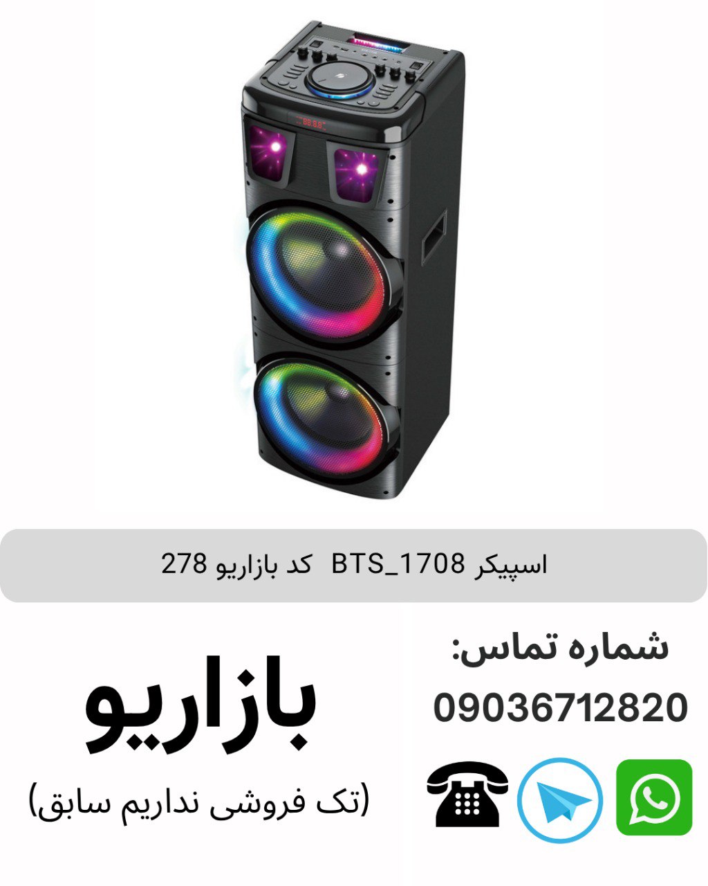 نام محصول: Torima 1708 قابل حمل RGB LED Bluetooth Speaker USB-TF Black توضیحات محصول: BTS-1708 یک بلندگوی حرفه ای کارائوکه است که خروجی صدای قدرتمند و جلوه های نورپردازی سرگرم کننده را ارائه می دهد. مجهز به 2 بلندگوی 10 اینچی و 2 ساب ووفر 10 اینچی. این کار صدای بلند و واضحی را ارائه می دهد. چراغ های LED اسپیکر را می توان با توجه به ریتم موسیقی یا ترجیحات شما روشن کرد. ویژگی های محصول: توان خروجی 200 وات rms2 بلندگو 10 اینچی ساب ووفر 2*10 اینچی اتصال بلوتوث پورت USB
