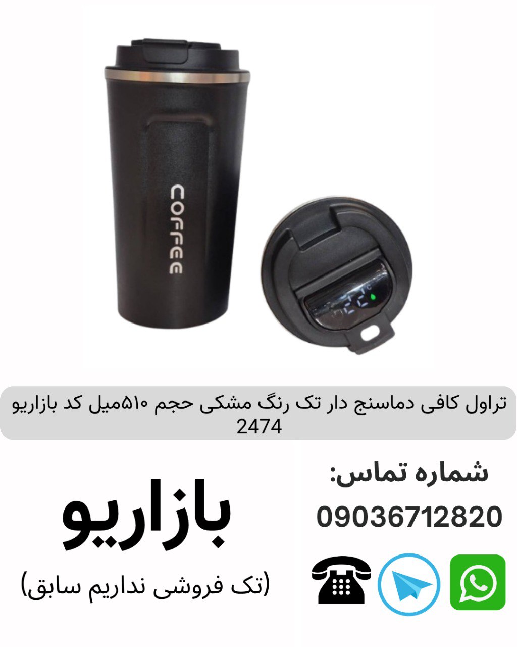 تراول کافی دماسنج دار تک رنگ مشکی حجم ۵۱۰میل کد بازاریو 2474