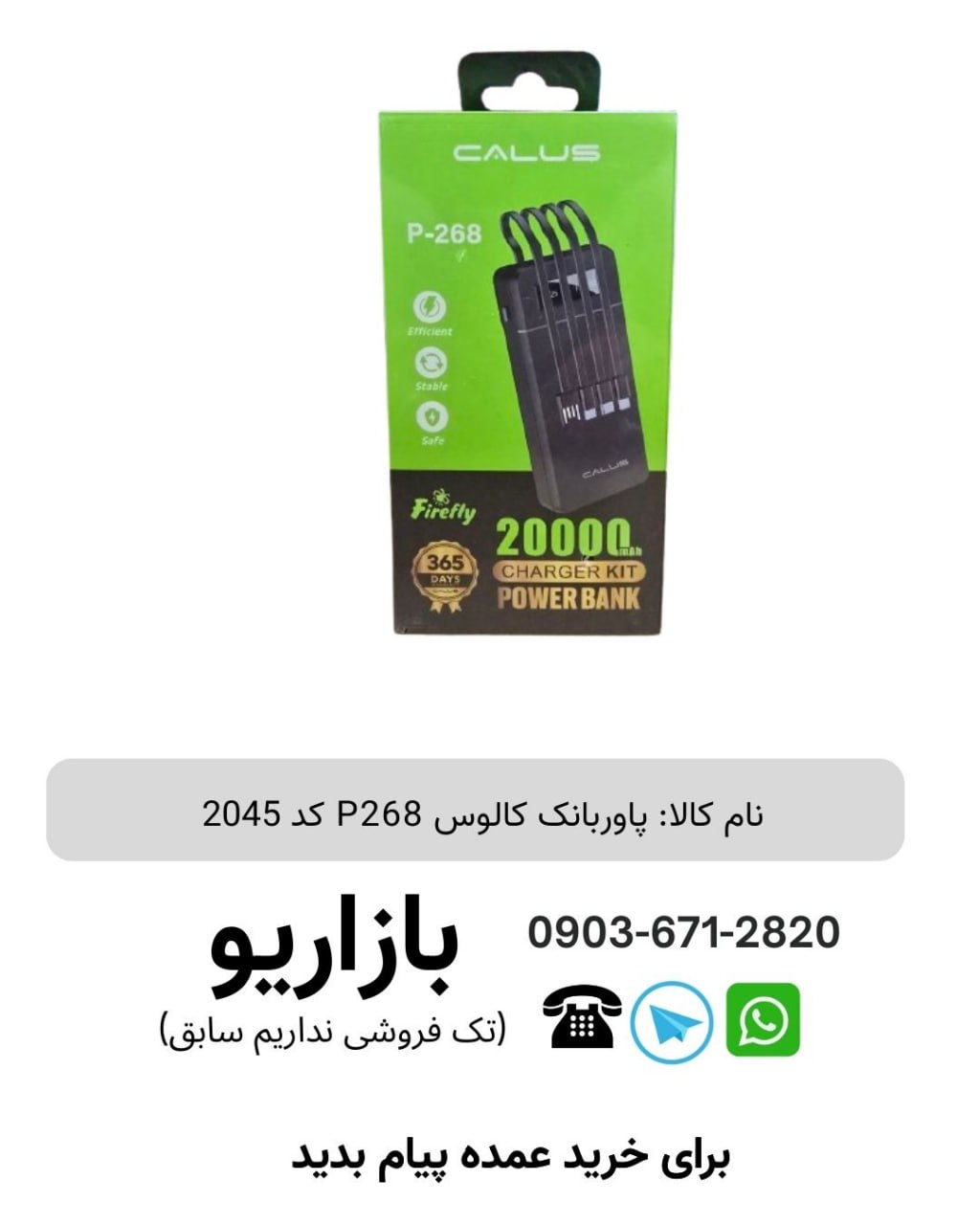 پاوربانک 20 هزار کالوس مدل P268 کد 2045