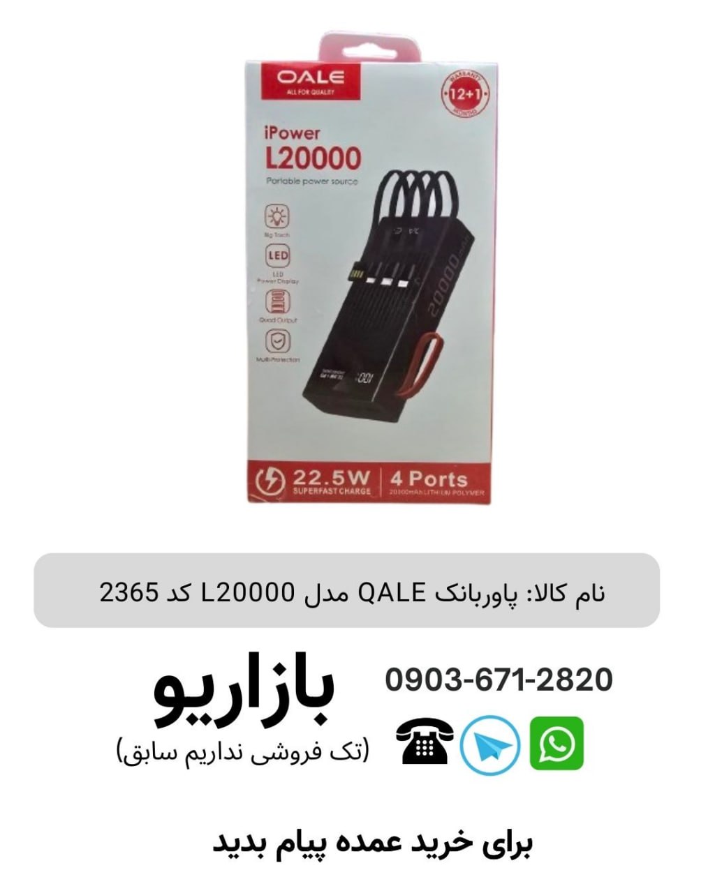 پاوربانک 20 هزار QALE مدل L20000 کد 2365