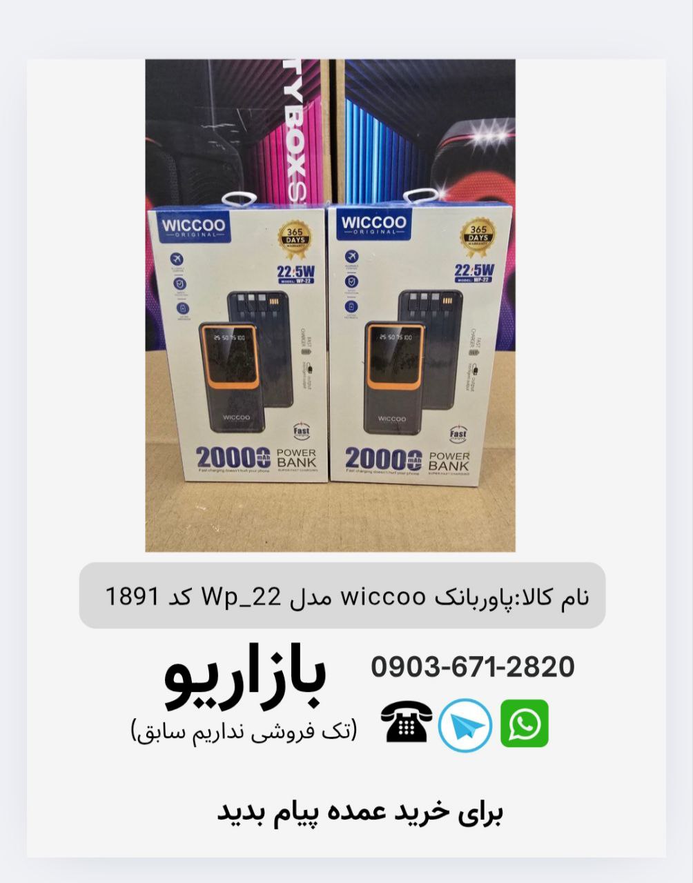 پاور بانک 20 هزار wiccoo مدل wp_22 کد 1891