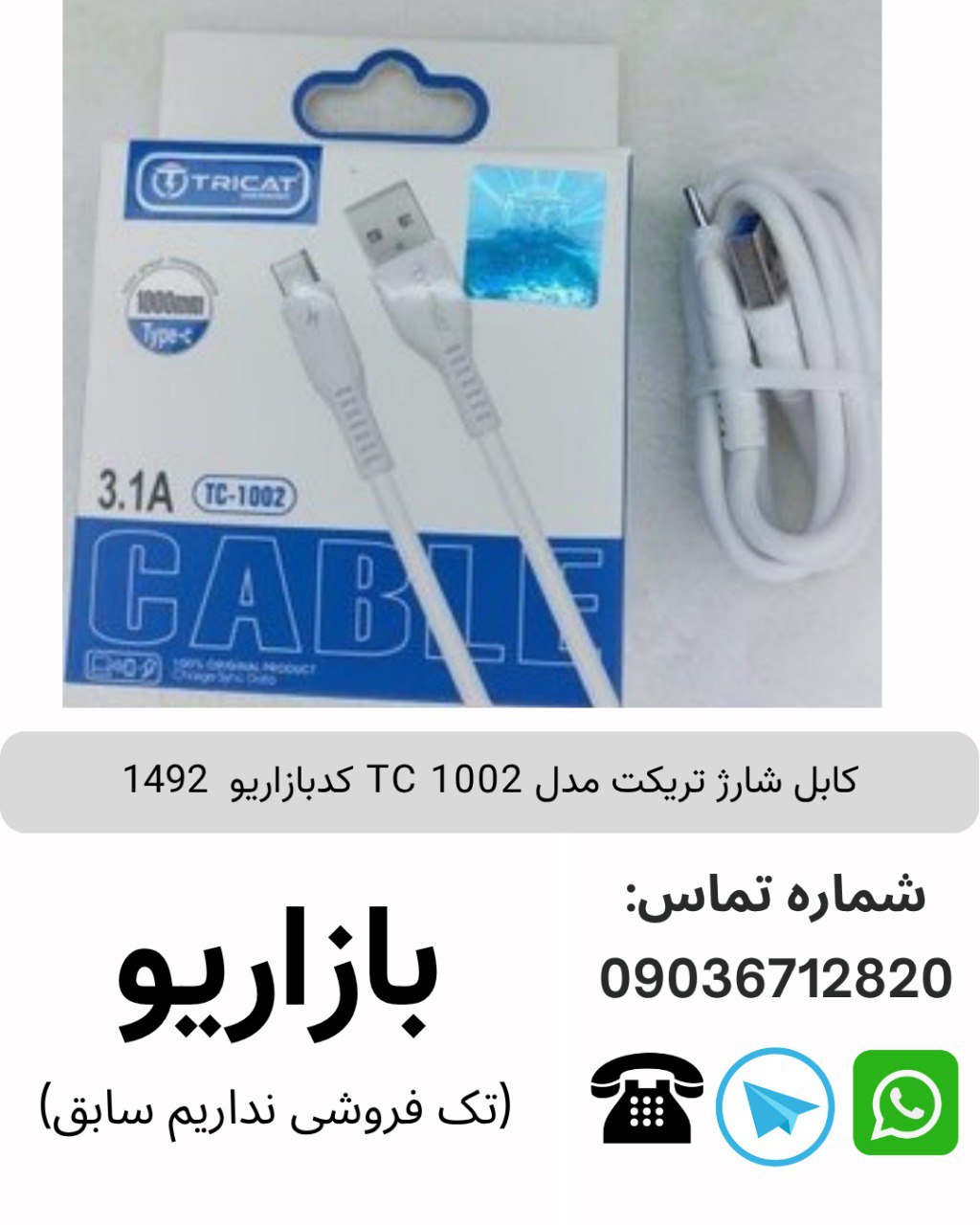 کابل شارژ تریکت مدل TC 1002 کدبازاریو 1492